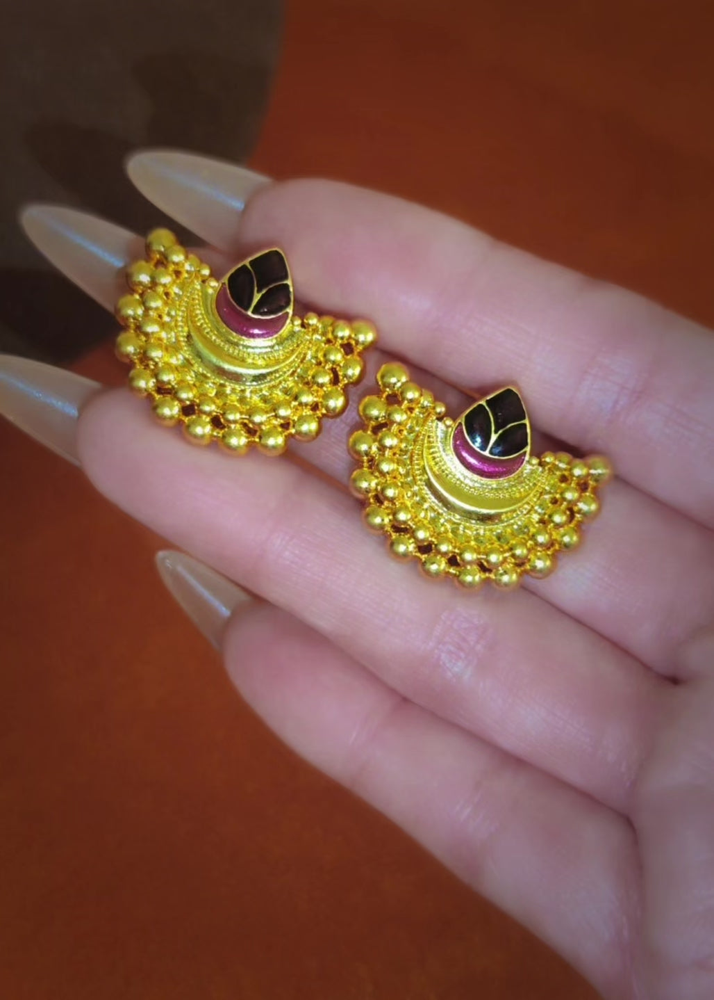 A tribute to sacred birds and ancient symbols of grace, these earrings channel a sense of mystic beauty through their fan-like silhouette and radiant detailing. Embellished with a deep-set jewel that evokes the all-seeing eye, the design is rich with meaning — a celebration of femininity, wisdom, and divine allure. Their sculptural feathers and arched form recall the elegant sweep of a peacock in motion, perfect for sun-drenched escapes and decadent, faraway evenings.