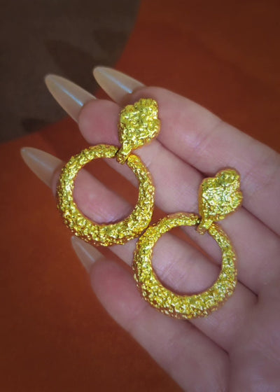 Intricately detailed with a sun-kissed texture, these sculptural hoops exude warmth and elegance with every curve. The open ring form feels both regal and relaxed — like a relic discovered on a distant coastline. Light-catching and opulent, they bring a quiet drama to breezy linen and golden skin, perfect for elevated escapes.